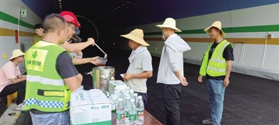 5 7月12日,在我省“县城通”高速项目——德(州)上(饶)高速石台至祁门段路面摊铺现场,项目办负责同志特意在隧道口阴凉位置设置了一处“清凉驿站”。 ■ 交控宣