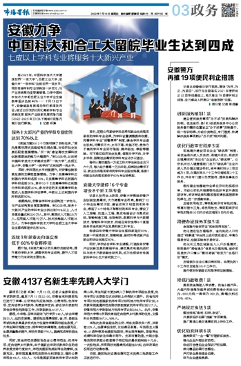 安徽力争 中国科大和合工大留皖毕业生达到四成