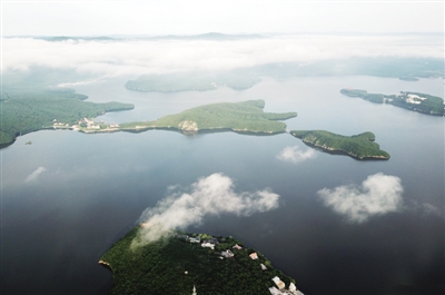 随着近日降雨天气的增多,在位于黑龙江省牡丹江市的镜泊湖世界地质公园,湖水与周边山林常被云雾笼罩,宛若一幅瑰丽而神秘的画卷。图为7月13日拍摄的云雾笼罩下的镜泊湖世界地质公园。■ 新华社记者 王建威/摄