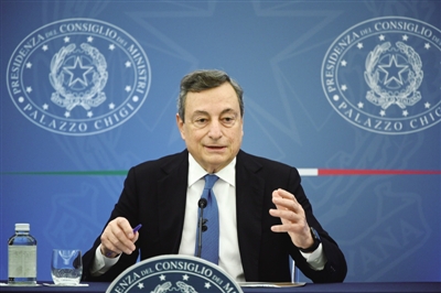 德拉吉曾担任意大利央行行长和欧洲央行行长,2021年2月出任意大利总理。舆论当时普遍期待这位经验丰富、不属于任何党派的政治人物能像当年帮助欧元区走出债务危机那样,带领意大利克服新冠疫情影响、恢复经济。德拉吉组建了一个覆盖议会诸多政党、政治谱系跨度极大的“彩虹式”内阁。