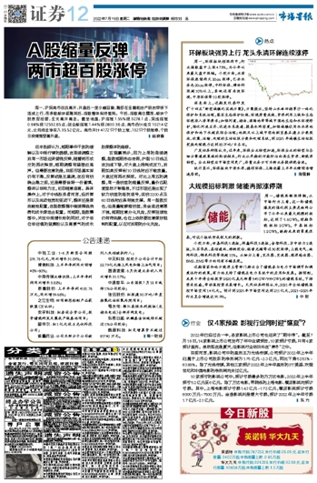 A股缩量反弹 两市超百股涨停