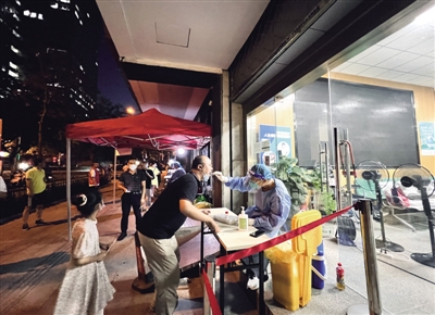 3 近日,合肥庐阳区庐江路一区域核酸检测点,为了给检测人员降温,利用旁边的某单位大厅送上凉风。 ■ 祝亮