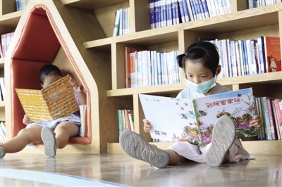 5 7月17日,在合肥市庐阳区杏花公园内的杏花书院,儿童正在阅读书籍学习知识。 ■ 赵明