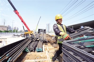 2 7月25日,在合肥庐阳经济开发区清河路地跌八号线施工站点,来自中铁上海工程局的工人正在对第十一段主体结构顶板进行混凝土浇筑。 ■ 赵明