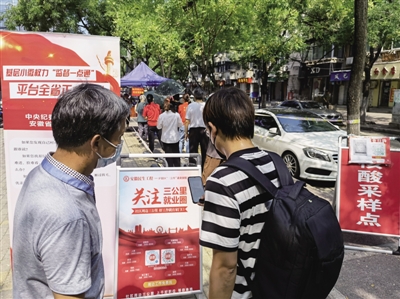 5 7月22日,合肥市庐阳区在辖区150余个住宅小区核酸检测采样点同步设置社区“三公里”就业圈宣传点。 ■ 刘晓丽 陈辛