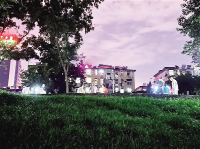 6 7月24日晚,多位合肥市民带着便携台灯,在银河公园内打牌、下棋纳凉。 ■ 祝亮