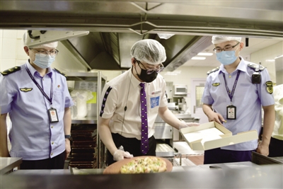 7月27日,合肥市蜀山区井岗镇市场监管所、“两代表一委员”和十里庙社区工作人员在对网络订餐店进行专项检查。连日来,安徽省合肥市蜀山区井岗镇市场监管所开展网络订餐行业专项整治行动,对辖区360家网络订餐行业实行全方位、无死角的线上线下同步清查,护航网络订餐食品安全。