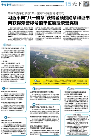习近平向“八一勋章”获得者颁授勋章和证书 向获得荣誉称号的单位颁授荣誉奖旗