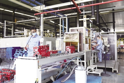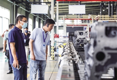 随后,走进全柴天和金加工车间,嘉宾看到工人与机器人共同在生产线上忙碌的景象。每走访一家企业,嘉宾都详细询问企业获得了哪些政策、产品技术含量、产业链情况等。