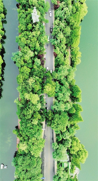 1 近日,有爱好航拍的合肥市民发现,从空中俯瞰环城西路,在杏花公园和黑池坝景区的“簇拥”下,犹如一条漂浮在水上的公路,甚是壮观。 祝亮