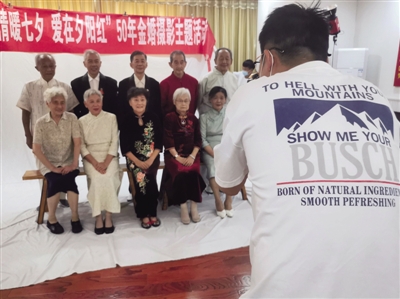 “我们结婚时,没有留下一张照片,算是人生一大遗憾。”吴荣坤说,如今,有了金婚纪念照,也算弥补了遗憾。据了解,组团拍摄金婚纪念照的8对老夫妻婚龄均已超过50年,最大的年过九旬,最小的也有70多岁。