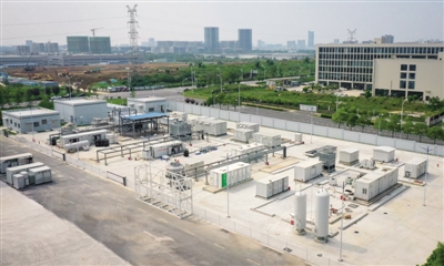 图为8月3日航拍的位于合肥市高新区的阳光氢能科技有限公司电解水制氢系统综合测试平台。