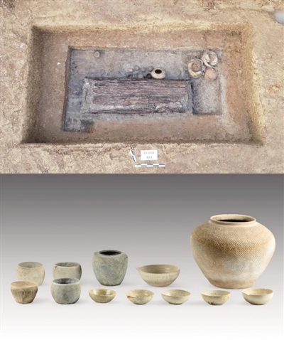 据悉,小宋家台子北墓地出土的原始瓷器、印纹硬陶器都是作为随葬品放置于古墓之中的。而在墓地发掘的过程中,一种叫做“独木棺”的葬具的发现,更是让专家们连连称奇!蔡波涛介绍,有一些墓葬的葬具保存得非常好,是典型的独木棺。独木棺是什么?就是一整根木头,然后中间掏空,两个扣合而形成的这种独木棺。独木棺这种葬具和葬俗也是吴越人的墓葬的典型特征。所以说这样的话就从随葬品的种类和它葬具的这么一个独特性,体现出非常明显的就是吴越系的特征,从而反映出它背后的人群。这批战国早中期墓葬的发现,填补了江淮西部地区吴越系墓葬的空白,为印证吴据州来以及吴楚江淮拉锯争夺的历史事实提供了重要材料支撑。结合近年来西圈墓地的发掘情况,这批典型吴越系墓葬的发现,进一步夯实了有关州来城、下蔡城的地望及其相关问题学术讨论的基础。