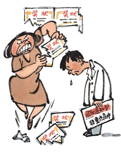孩子得了很多奖状,但在中考中却失利了,没有考上当地的重点高中,于是,孩子的妈妈很失望,觉得奖状太“欺骗”人了,愤而撕下满墙奖状。很难想象,这会对孩子造成多大的伤害。