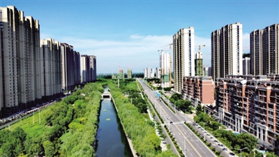 8月7日,俯瞰宿州市埇桥区三八河,两岸楼房矗立,绿树成荫,鸟语花香,水清如蓝,美丽如画。近年来,埇桥区大力实施全域冶水清水工程,统筹推进水资源保护、水污染治理,如今的三八河旧貌换新颜,已成为风景带,美不胜收。