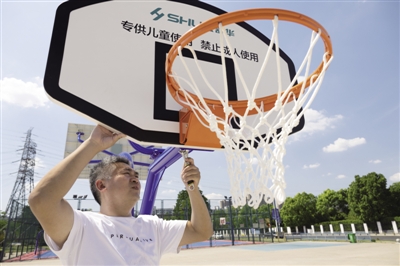 8月15日,在安徽省合肥庐阳经济开发区菱湖公园市民健身广场,施工人员正在安装全新健身器材。据悉,近日,该开发区综合文化站积极争取民生工程资金30万元对辖区内老旧、破损健身器材进行集中更换,着力解决群众健身安全问题,提升群众的幸福感和满意度。