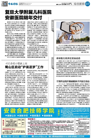 复旦大学附属儿科医院 安徽医院明年交付