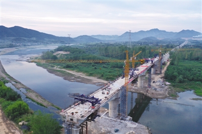 8月16日,由中铁五局承建的宣绩铁路全线重点控制工程——水阳江特大桥连续梁合龙。宣绩铁路位于安徽省宣城市境内,北起宣城市宣州区,南至绩溪县,线路全长111.7公里,设计时速350公里。图为合龙后的宣绩铁路水阳江特大桥连续梁(无人机照片)。