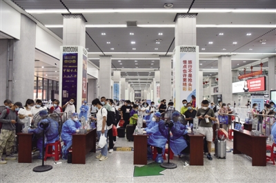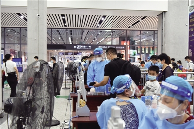 高铁南站是合肥市乃至安徽省对外进出的重要窗口之一,每天经过这里的旅客更是多达几万人。随着疫情的不断变化,根据属地防疫规定,合肥南站每天都有着巨大的防疫压力。现在又正值暑期,合肥正面临罕见的持续高温,大家都躲在房中享受空调带来的清凉,或尽量减少外出时间。然而,面对40℃的高温,却有这么一群人,他们不仅要顶着烈日出门,还要身着防护服,坚守在疫情防控检查点,用汗水为人民构筑起一道坚实的安全防线。