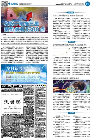 A股一阳拖三星 蓄势剑指3300点