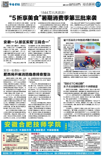 广告垂询电话:0551-62815807 新闻热线:0551-62620110 网络部:0551-62636377 发行部电话:0551-62813115