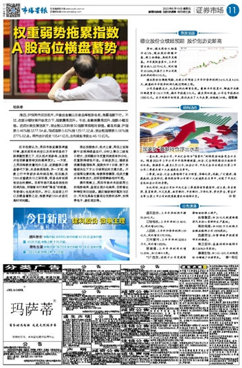 权重弱势拖累指数 A股高位横盘蓄势