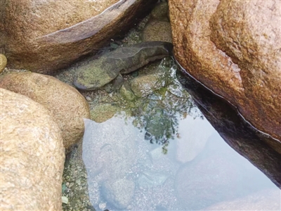 星报讯 8月18日,黄山市黄山区焦村镇龙源村的陶云师傅发现了一条“娃娃鱼”,“像长着脚的鲶鱼,估摸有8斤的样子。”陶师傅称,这几天他一直守着它,22日上午与当地镇政府等有关部门一起,将娃娃鱼放生。