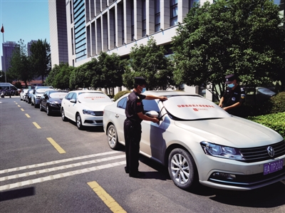 近日,合肥市持续高温。为减少酷热给车辆带来的损伤和办事群众出行的不便,安徽省政务大厦管理中心安排物业安保人员为前往省政务服务中心窗口办事的群众车辆提供遮阳板服务,受到群众好评。