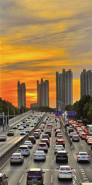 5 8月23日傍晚,合肥南二环的立交桥上,晚高峰的车流和晚霞相映成画。 祝亮