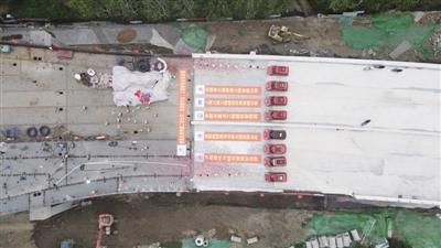 8月25日下午,随着最后一片主梁稳稳架在桥墩上,合肥市畅通二环北环淮南路节点工程桥梁上部结构全线贯通。 记者 祝亮
