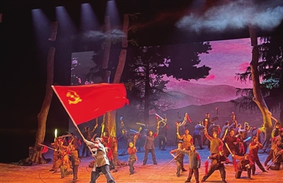 星报讯 8月28日晚,由中共安徽省委宣传部、安徽省文化和旅游厅共同举办“喜迎二十大 奋进新征程”安徽省优秀舞台艺术作品展演活动,民族歌剧《风雪大别山》亮相安徽大剧院。本次展演集中展示一批体现“四个讴歌”、彰显徽风皖韵的新创优秀舞台艺术作品。