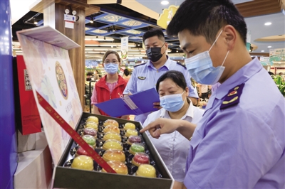 8月26日,合肥市庐阳区林店街道市场监督管理所执法人员来到辖区商超市场,开展中秋节日市场食品安全执法监督检查,加大对月饼、糕点等食品监督检查力度。