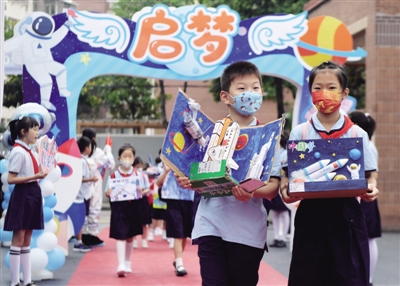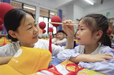 2 8月30日,合肥庐阳经济开发区安庆路第三小学灵溪校区,一年级新生在老师的带领下,参加朱砂启智、趣味游戏等活动。 张苏婉 史翠云