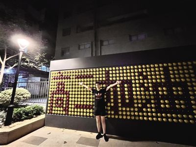 6 日前,在位于合肥市长江中路的新华书店门口,一名高中学生在街头墙上摆出了“高二加油”的字样。 祝亮
