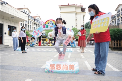当天早晨,翡翠学校全体党员教师来到校门口迎接新同学,为学生引导护航。此次入学教育通过“新交往心体验”“新环境悦体验”“新学习智体验”“新规则趣体验”等充满童趣的环节帮助孩子们认识班级,认识老师和新同学;认识校园交通线,学会文明行走;熟悉教室、厕所、茶水间的位置;了解课堂及课间礼仪;了解就餐规范以及路队训练等日常行为规范。对于个别同学出现的不适应等情况,几名老师在现场安抚孩子们,和他们聊天,并全程陪同带领他们认识校园和班级,有效地缓解了孩子们的紧张情绪。