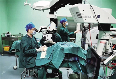 黄斑是眼睛感光的重要部位,也是人眼视觉最敏锐的部位,位于视网膜的中心位置。一旦受损,可导致中心视力下降、视物变形、视野中央固定黑影等症状。近日,一名黄斑下大量出血患者在中国科大附一院接受了25G微创玻璃体切割术联合阿替普酶视网膜下注射和全氟丙烷填充术。9月1日,记者获悉,术后一个月,该患者右眼视力由术前的近乎失明(0.06)提高至0.4。据悉,这是安徽首例成功运用超微创技术治疗黄斑下出血,该技术的使用填补了我省眼科超微创技术的空白。