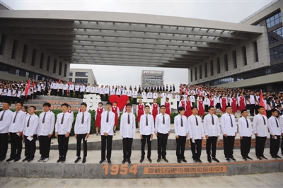 一代代六中人厚积深蕴,成就了六中的丰厚历史,一代代六中人锐意进取,不断揭开六中发展的新篇章。高一年级全体学生诵读《六中赋》,响亮庄重的诵读声响彻校园,迸发出强劲的新生力量,同时表达出了对新六中的无限热爱与期待。