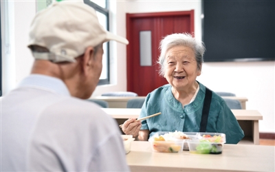在合肥市蜀山区琥珀街道北苑村社区居家养老服务综合体,老年人在购买、享用美味可口的午餐,蜀山区琥珀街道顺应民生需求,在辖区探索设置老年人助餐点和配送点,有效满足周边独居、高龄老年人的助餐服务需求,持续提升老年人的获得感、幸福感。