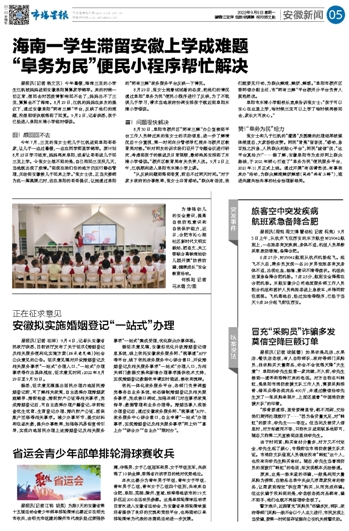 海南一学生滞留安徽上学成难题 “阜务为民”便民小程序帮忙解决