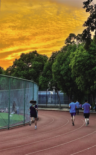 1 9月2日傍晚,在安徽省体育局田径场上,市民们“身披”霞光奔跑在跑道上。 祝亮