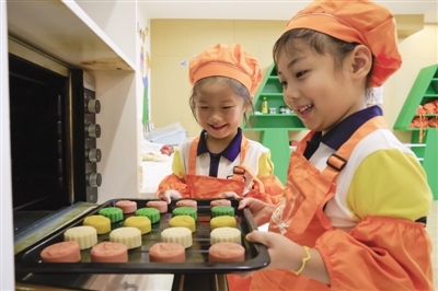 2 9月7日,在合肥庐阳经济开发区华美幼儿园,大班的孩子正在志愿者带领下学做中秋手工月饼。 赵明 薛知强