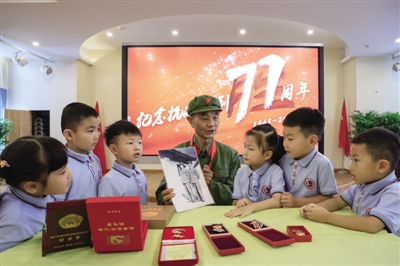 3 9月2日,合肥庐阳经济开发区金池社区党委联合双岗幼教集团逍然居分园开展“铭记历史,传承红色基因”纪念抗日战争胜利77周年主题活动,邀请老兵走进校园与孩子们互动交流。 谭炎哲 陈天竹
