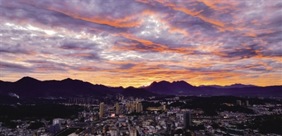 5 9月4日傍晚,岳西县上空出现绝美的大片火烧云,将整个县城映得通红。 祝亮