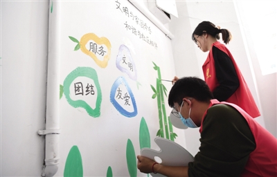 日前,合肥市蜀山区北苑村社区的“小管家”提上颜料走到琥珀山庄108栋二单元居民楼开始作画。新刷的白墙干净整洁,楼道扶手崭新。随着小管家们的忙碌,一幅幅爱护环境、居民和谐的画面跃然墙上。