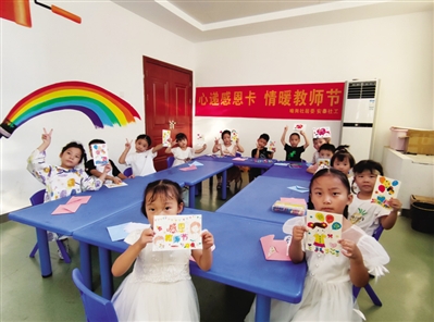 在第38个教师节来临之际,日前,合肥市瑶海区喻岗社居委联合安泰社会工作服务中心组织辖区儿童开展手工制作教师节贺卡活动。通过亲手制作贺卡送给老师,来表达孩子们对老师深深的祝福,感谢他们的辛勤付出和无私奉献。