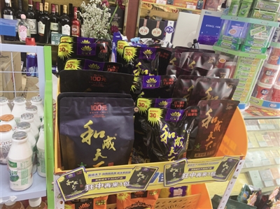 近日,记者走访合肥多家小型商超与烟酒商店时发现,槟榔几乎在每家门店均有售卖,且摆放在收银台附近较为显眼的位置,大部分产品售价在10元至50元不等。而在合肥宁国路与芜湖路交口附近的一家商店内,记者看到,这里还有每包价格100元的槟榔在售卖。