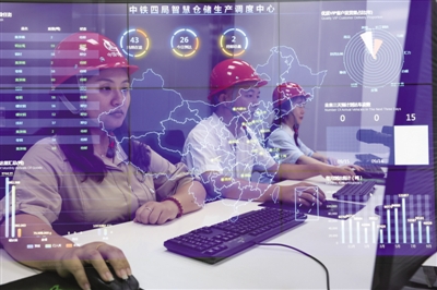 4 9月14日,在合肥庐阳经济开发区中铁四局物资公司,技术人员正在利用先进自动化仓储设备和智慧物流平台对电器和钢材等物资进行出货管理。 赵明