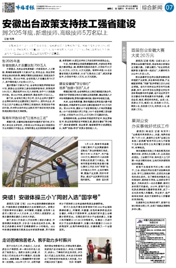 安徽出台政策支持技工强省建设