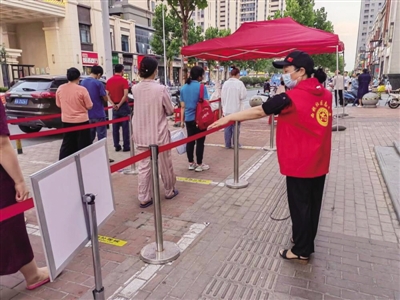 在全员核酸时,她不畏酷暑,奔走在检测点。为了防止人群聚集,她维持现场秩序,保证人与人之间间隔两米,汗流浃背,仍不知疲倦,忘我地投入到为居民服务中。她还是社区调解队的成员,通过拉家常,小之以情,大之以理,及时化解多起家庭、邻里矛盾。