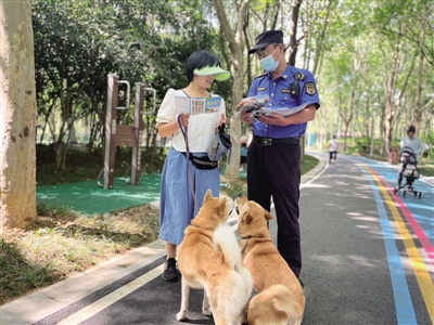 为倡导居民文明养犬行为,近日,合肥高新区城管局在蜀峰湾体育公园开展文明养犬宣传活动,执法人员向过往游客宣讲文明养犬知识,引导居民养成文明养犬意识和习惯。